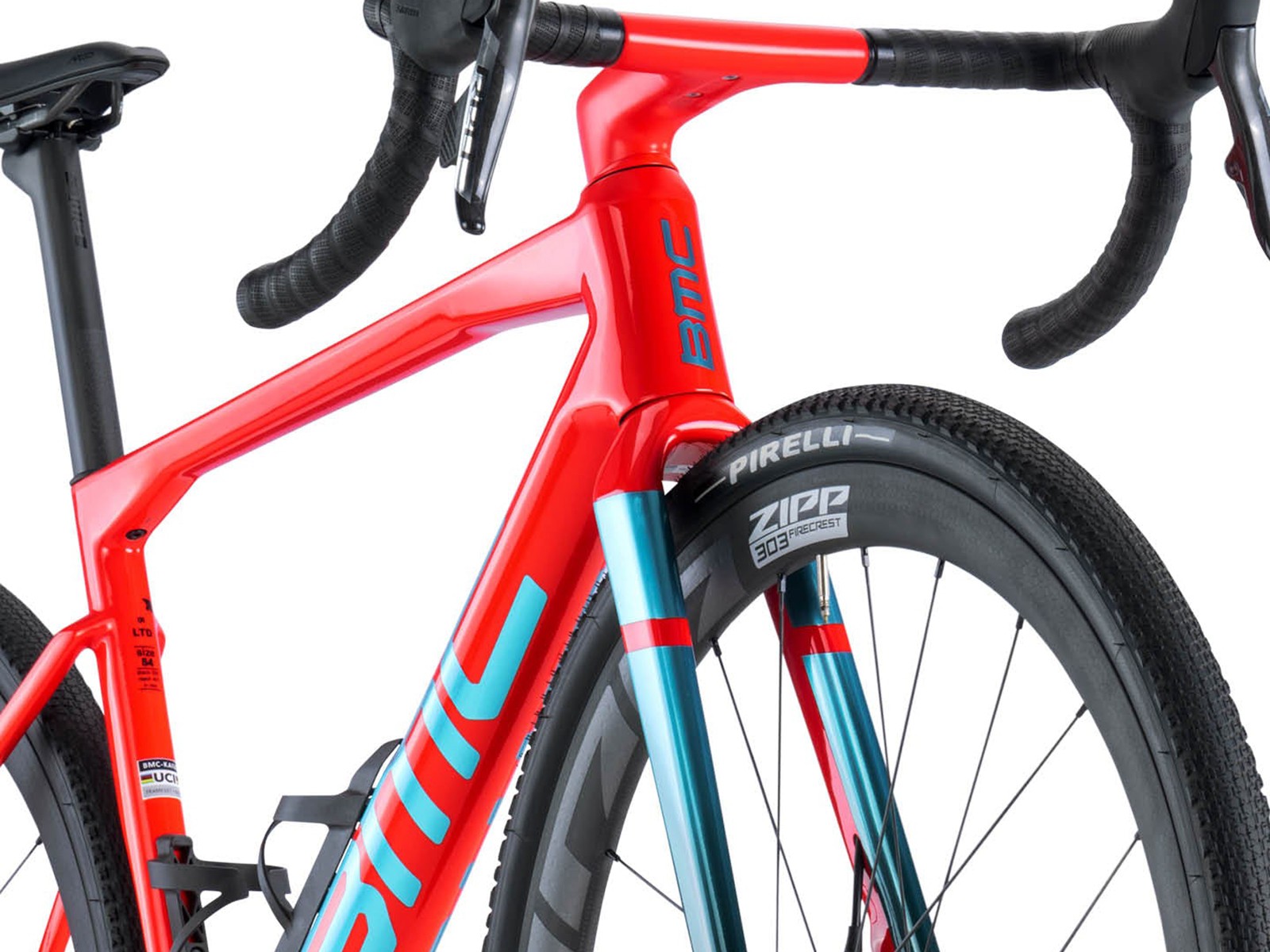 Vélo gravel carbone BMC Kaius 01 LTD Red XPLR eTap AXS Peacock Spider 2024