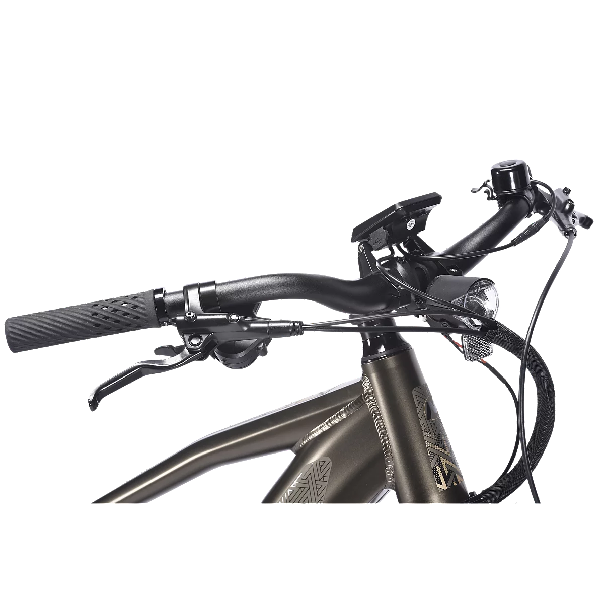 Connectivité : Améliorez l’expérience d’utilisation de votre vélo électrique E-CROSSOVER XA grâce à l’application NAKA E-POWER : connexion de votre vélo en Bluetooth, calcul de l’autonomie de la batterie en fonction de votre parcours et de votre consommation moyenne, suivi de votre activité, compteur d’économie de rejet de gaz à effet de serre…